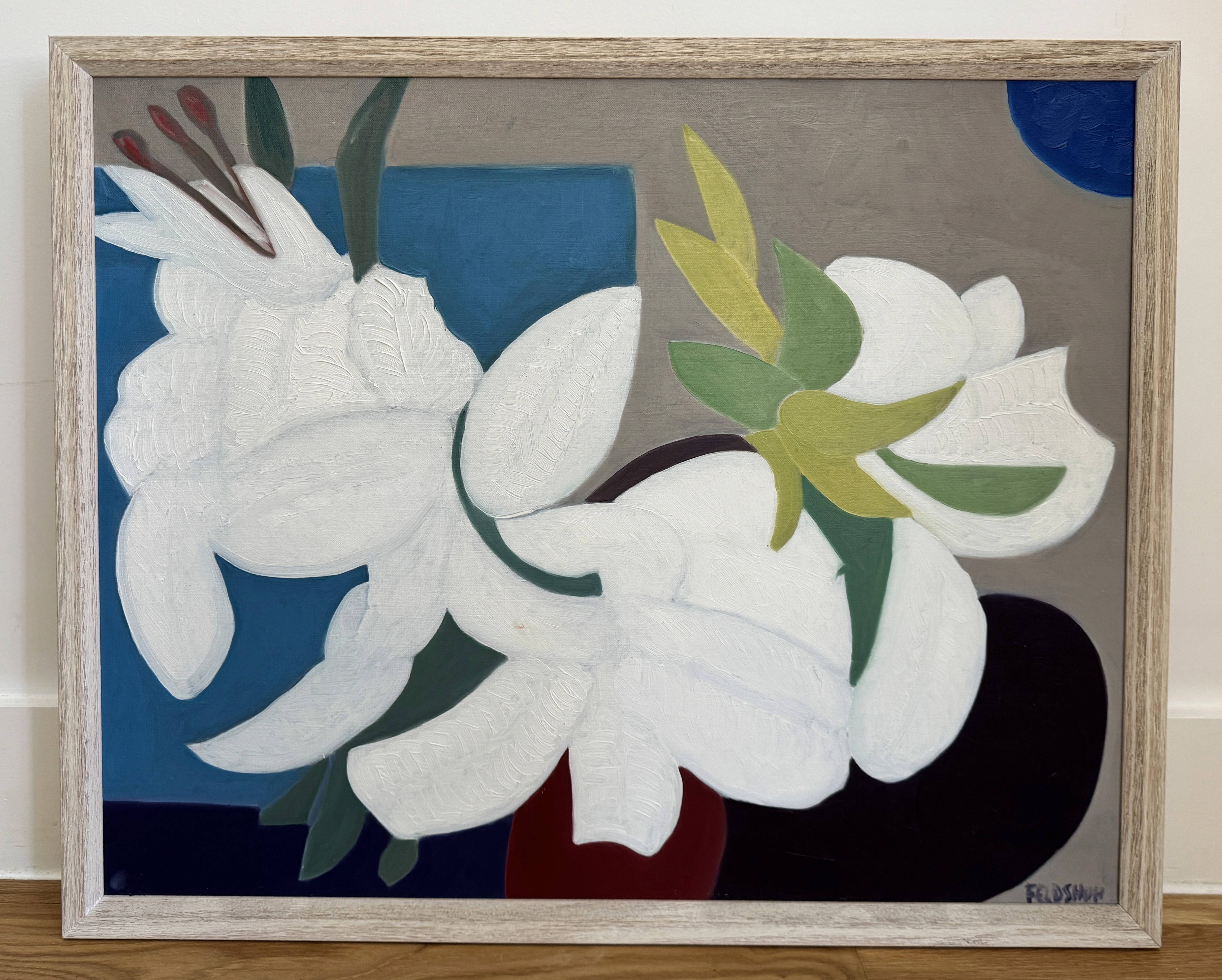Through it all, painting was always a constant companion. For seven years, Feldshuh studied in the studio of Sam Adler, who became a lasting influence and mentor. Despite pressures from his family to pursue more practical paths, he remained devoted to painting, working both in Adler’s studio and in his own, steadily building a body of work that he stored away over time.